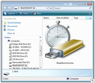 Se voce tem um Pen Drive de 1 ou 2 gb voce coloca ele e Abililita o Ready Ebooster e seleciona quanto vai querer colocar, quanto + , mais performance na maquina . Se voce tem 2 gb de ram e colocou uma Pen de 1gb tua maquina fica como se tivesse com 3 gb de memória e assim por diante,ele Transforma o Espaço da Pen Drive em MEMORIA RAM!